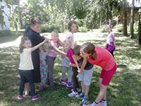 Szabadtéri csapatjátékok, ügyességi vetélkedők, szalonnasütés